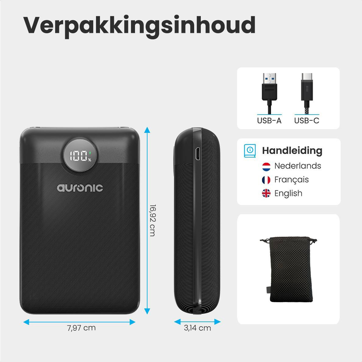 Ben je al onderweg? Jouw Auronic Powerbank 20.000 mAh staat paraat. Deze ultradunne snellader is slechts een fractie dikker dan je iPhone of Samsung-telefoon. Met deze handige gadget heb je altijd en overal stroom bij de hand, zodat je nooit meer met een lege batterij komt te zitten.