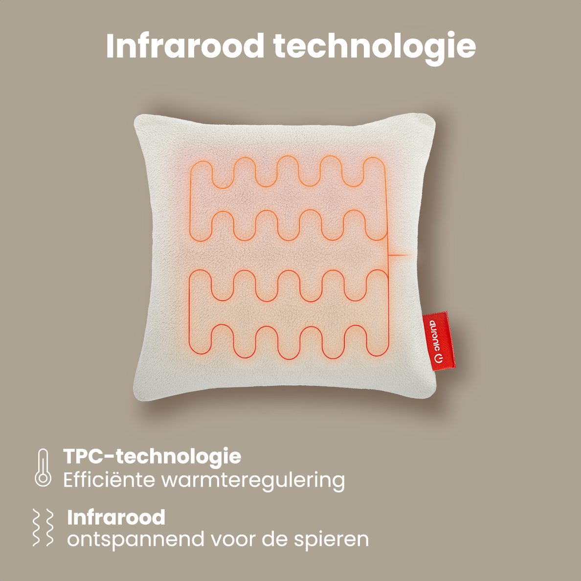 Met een verwarmde oppervlakte van 25x25 cm biedt dit elektrisch warmtekussen je de juiste hoeveelheid warmte op de belangrijkste gebieden. Dit maakt het ideaal voor gebruik op de bank, in de slaapkamer of in je favoriete stoel. Het warmtekussen is voorzien van infrarood technologie, die diepere en efficiëntere warmteverspreiding mogelijk maakt. De TPC (temperature protection control) warmte-elementen zorgen daarbij voor een snelle en evenwichtige warmteverdeling.
